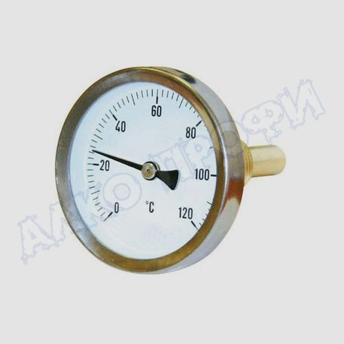 Термометр биметаллический с погружной гильзой (гильза входит в комплект), используется для измерения и контроля температуры воды или газа. Подходит для самогонного аппарата, шлема, колонны, царги, сухопарника, куба, бака, ПВК, аламбика.